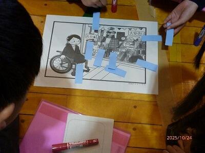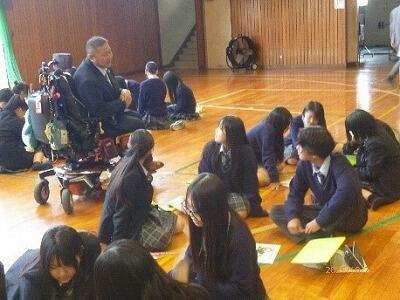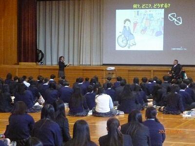 10月24日(金)5・6校時、1・2学年の生徒を対象に障害とは何か、どこにあるのか、解決のためにどうしたらいいのかを考えました。