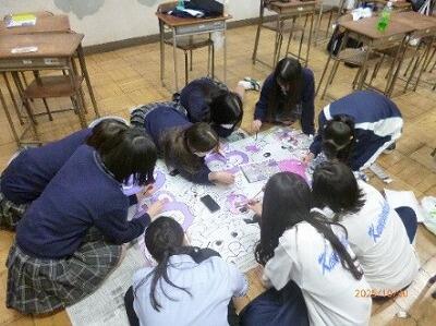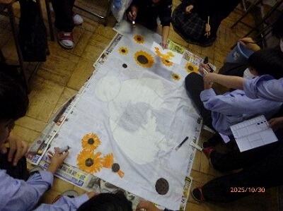 体育祭(11月5日(水)開催)の応援旗をつくるクラスの様子です。