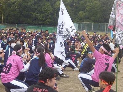 クラスのカラー(全16色)のハチマキをして、そしてクラスカラーをモチーフにした個性豊かな応援団旗が出そろいました。