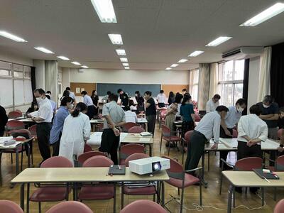 9月24日(水)の放課後、教職員全員で危機管理に関する校内研修を行いました。テーマは「熱中症」でした。