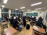 期末テスト1週間前から、放課後19:00まで自教室で学習することができます。11月24日(木)16:50の1年生の様子です。多くの生徒が自主的に教室に残って黙々と学習に取り組んでいました。