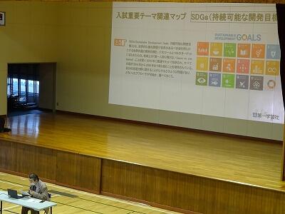 生徒たちは、12月に、「SDGsの17のゴールから1つを取り上げて、それに関わる現代の日本が抱える問題と、その問題への取り組みについて、自分の考えを600字で論じる」という小論文を書きました。