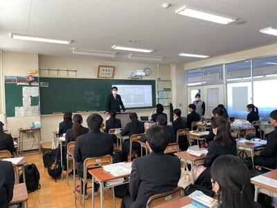 次に進路指導部長からは、受験上の諸注意や、周囲への配慮を忘れずに試験会場に入るなどの具体的な説明と激励の言葉がありました。