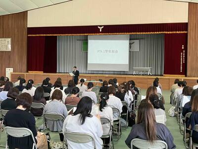 10月17日(金)1学年の保護者様にご来校いただき、PTA総会を行いました。校長の挨拶の後、生徒指導部長からは交通事故防止を中心とした情報提供を行いました。進路指導部長からは、昨今の入試に関する情報提供、進路の選択を見据えて、今お子様と相談していただきたいことについてお話しさせていただきました。