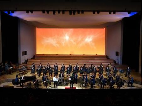 第1部の最後の演目として、本校吹奏楽部が鹿沼商工高音楽部とスウィングトワイライト・ジャズオーケストラとのジョイント演奏を行いました。1曲目は大ヒット映画「アナと雪の女王」の劇中歌「Let it go」を、2曲目は「情熱大陸」を演奏しました。「情熱大陸」では、本校卒業生のヴァイオリニスト柳田茜さんが素晴らしいソロを披露してくださいました。生徒たちのひたむきな演奏やパフォーマンスに、会場の皆様から盛大な拍手と温かい笑顔をいただきました。
