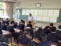 6月27日(木)期末テスト終了後、交通講話を実施しました。講師は日本自動車連盟(JAF)栃木支部の田村さんです。映像を見て、自転車の運転手の立場からの危険予知、危機回避について学びました。