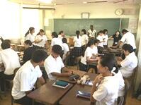 この一環として、8月27日(月)県内の県立学校に配置されている10名のALTにご来校いただき、2年生全員を対象に 『 English Camp 』 を開催しました。生徒達は希望により、Presentation・Discussion・Short play・Speech4分野に分かれて終日英語による発信の学習をしました(研修を受けました)。長時間の英語漬けでしたが、貴著な体験と受け止めた生徒が多く、 『 English Camp 』 ではなく 『 English Jump 』 ではないかと表現した生徒もでてくるなど、英語による発進力をつけるための、最初のステップとしてたいへん有益な機会となったようです。ご協力くださいました10名のALTの皆様と、派遣を快くお認めくださいました10校の関係者の皆様に感謝申し上げます。