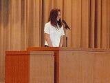 次に壮行会。三瓶あゆりさん(弓道部2年)が、栃木県の少年女子チームの一員として、福井国体に出場します。