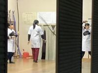 2月27日(木)、来週月曜日(3月2日)に開催予定の卒業式の会場準備をしてくれている1年生です。
