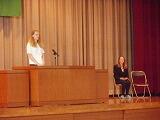 ALTのレイチェル先生(アメリカ)と、留学生ヘルリンデさん(ベルギー)の紹介がありました。レイチェル先生は、月・水・金曜日に本校に勤務します。ヘルリンデさん(愛称リンデ)は第2学年のクラスに入り、これから1年間、本校生とともに学びます。