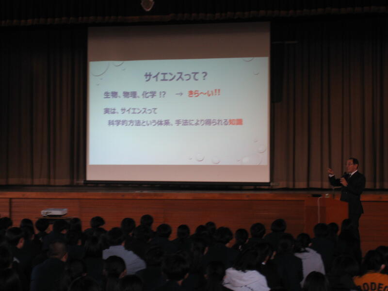 篠崎先生ご自身の疑問を解決する姿勢や、興味をもったことをとことん追求する『サイエンス』の考え方から多くのことを学ぶことができました。どんなことに対しても疑問に思える気持ちを持てるかどうかが大切だと教えられ、生徒たちは皆、先生のお話に興味深く聴き入っていました。
