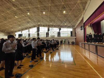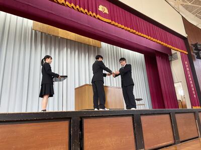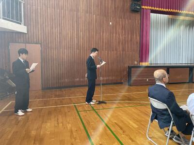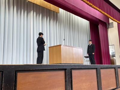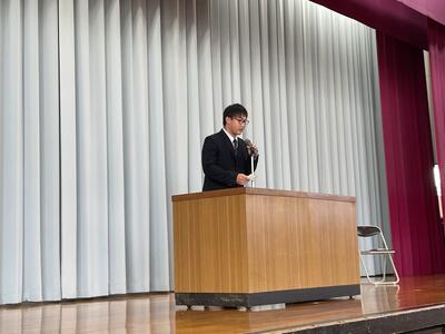 校長先生、生徒会長から激励の言葉