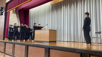 大村団長を中心に団員の力強い応援、そして全校生徒からの手拍子