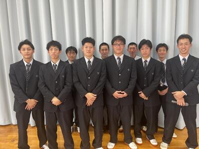 野球応援のために結成された応援団。試合中大きな声援が背中を押してくれて本当に力になったので、是非2人にも熱いエールを受け取ってほしいと生徒会長からサプライズ