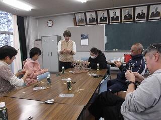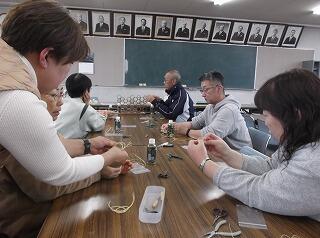 今年度は、PTA副会長の安藤芳子さんを講師にお迎えし、水引きを使ったアクセサリー製作に挑戦しました。
