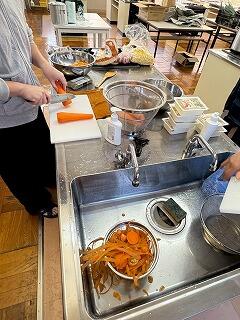 8日鹿南祭当日は7時に集合していただき、400人分の豚汁を仕込みました。