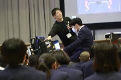 鹿沼自動車教習所の協力・監修のもと、代表生徒が自転車シミュレーターを体験し、実際の交通場面を想定した危険予測や安全確認の重要性を体感しました。今回の取り組みにより、生徒一人ひとりが安全意識を高め、地域社会の交通安全に貢献できるよう努めていくとともに、学校としても継続的に安全教育を推進してまいります。