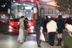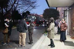 ① 校内ロータリー付近で降車し、車は西門から出てください。