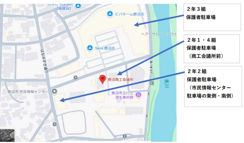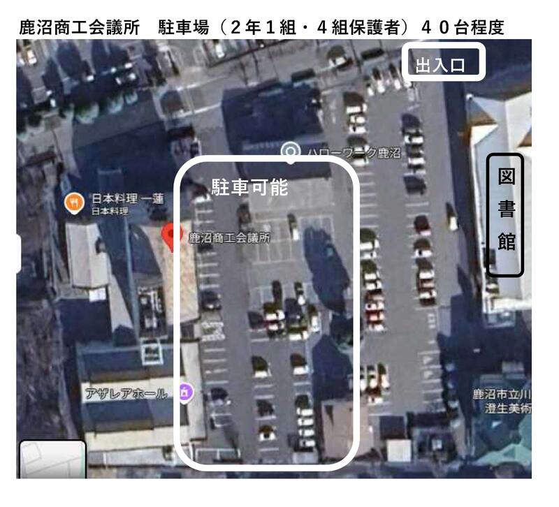 PTA2学年部会駐車場の配置図です。メールでもお伝えしましたが、こちらにも掲載いたしますので、 ご確認いただけますと幸いです。