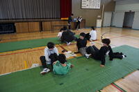 体育館では握力、立ち幅跳び、体前屈、反復横跳、立幅跳を行い、グランドでボール投げ、50m走を実施しました。その後、身長・体重測定、視力検査、聴力検査を行いました。シャトルランは体育の授業で行います。