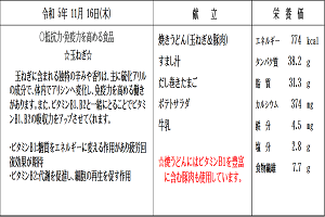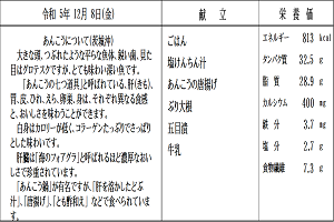 【感想】福豆(大豆)がたくさん入った福豆ご飯はとてもおいしかったです。大豆を手間かけて(乾燥福豆を15分ほど水につけてからお米と他の具と一緒に炊き込みました。)ふかしていただきありがとうございました。山芋のフライドポテト初めて食べましたが(初めてのメニューでしたが、生徒にも先生にも好評でした。)とてもおいしかったです。甘口のタレのかかったいわしの蒲焼きもおいしかったです。冬の根菜がたくさん入ったけんちん汁は身体が温まりまいた。ごちそうさまでした。