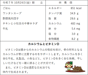 令和6年11月7日(木) 投稿日時 : 2024/11/07 管理者 【感想:K先生】ポークカレーライスは、スパイスと野菜が多く、全ての食材とマッチしていておいしかたです。コンソメスープも温かく、アサリや小松菜が入って鉄分もしっかりとれ、コールスローサラダとの相性も良くおいしかったです。ごちそうさまでした。