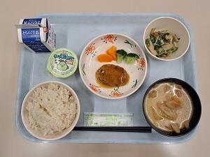 【感想】11月になり、朝夕は冷え込んできたため、熱々の野菜汁で身体が温まりました。枝豆、ベーコン、じゃがいもなど具だくさんで、柔らかい味のスープでおいしかったです。照焼ハンバーグは柔らかく、優しい味でした。デザートのラ・フランスゼリーは甘くておいしかったです。ごちそうさまでした。
