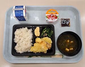 【感想:K先生】大根のゆかり和えは、大根のシャキシャキ感とゆかりがあっていておいしかったです。塩味のけんちん汁は、温かく、いろんな種類の食材が入っていて楽しんで食べることができました。梅ごはんは梅の酸味とごはんの甘みがほど良く、熱中症予防に最適だと思いました。ホイル焼きは、野菜と鶏肉がたっぷりで、とてもおいしかったです。生徒にも人気な献立だと思います。ありがとうございます。ごちそうさまでした。