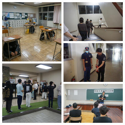 地震の訓練、火災発生による初期消火の訓練、119番通報の訓練、火災からの避難訓練を行いました。あいにくの雨で集合場所を急遽変更しましたが、全ての訓練をスムーズに行うことができました。