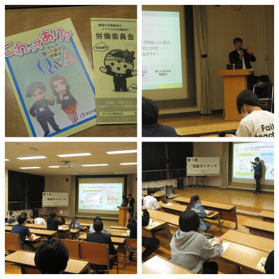 働くにあたっての心構え、アルバイトや就職してから気をつけなくてはならないことなどを、まんがや動画を交えてわかりやすくお話ししてくださいました。