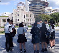 長時間の移動にもかかわらず、生徒たちは終始明るく、昼前には広島駅に到着しました。午後は広島平和記念公園を訪れ、戦争と平和について真剣に考える時間を持ちました。ガイドの方の話に耳を傾け、対話を通して平和の大切さを改めて感じることができたようです。