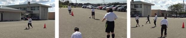 1年生はサッカーの授業で、ドリブルの練習をしました。カラーコーンのまわりを上手にドリブルして戻ってくることができました。みんな集中して取り組み、少しずつ上達しています。