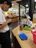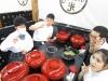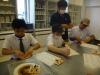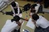 7月の授業では、ビー玉を輪ゴムでくくりつけたり、クリップを挟んだりして、模様のイメージを膨らませながら絞り入れを行いました。