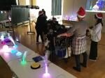 次は光遊びです。イルミネーションのトンネルをくぐり、ペンライトやブラックライトなどいろいろな光装置を楽しみました。自分でスイッチを押して点灯することもできました。