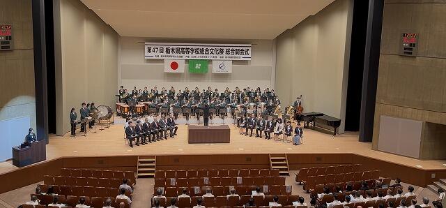 9月16日(火)栃木県総合文化センターで行われた第47回栃木県高等学校文化連盟総合文化祭総合開会式に県立宇都宮中央高等学校が参加しました。式典では開式のファンファーレ、国歌・県民の歌の伴奏を演奏しました。