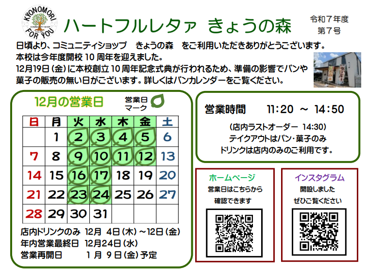 日頃は本校のパンやお菓子をお買い求めいただき、ありがとうございます。