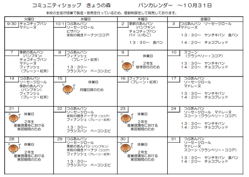 日頃は本校のパンやお菓子をお買い求めいただき、ありがとうございます。