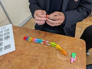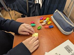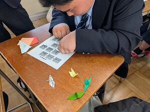 11月7日(金)のHRの時間を利用して、みんなで平和を祈りながら心を込めて鶴を折りました。修学旅行2日目に訪れる広島平和記念公園で、原爆で亡くなった子どもたちの霊を慰めるとともに恒久の平和を祈りながら「原爆の子の像」へ千羽鶴を奉納して来たいと思います。