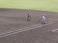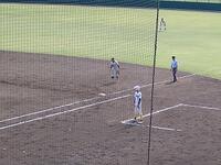 本校の部員1名は、8番・右翼として先発出場し、途中守備交代で一塁も守りました。また、今大会では連合チームの主将も務めました。なかなかランナーの出塁ができなかった中、チームとしての初出塁となる四球を選び、それがチームの初得点へと繋がりました。守備では外野から全体への声かけや指示を懸命に行っており、チームに貢献していました。