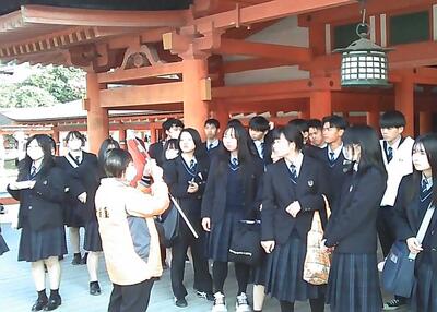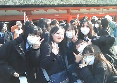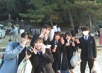 修学旅行(1日目) 投稿日時 : 11/26 管理者 R7年度の修学旅行が始まりました。朝は5時30分に那須塩原駅に集合し、そこで出発式を行いました。多くの先生方から見送られ元気に出発できました。 1日目の今日は新幹線や飛行機を利用し、広島へ向かいました。到着後は宮島へ行き、ガイドさんに案内していただきながら、厳島神社の見学をしました。 その後は宮島では自由時間もあり、楽しく買い物をする生徒たちの様子も見られました。 夜はお好み村でお好み焼きを食べました。みんなおいしくいただきました。1日目は大きな体調不良もなく過ごせました。明日以降も楽しい修学旅行にしましょう。 Tweet {{options.likeCount}} {{options.likeCount}} {{options.unlikeCount}} {{options.unlikeCount}} 0 コメント