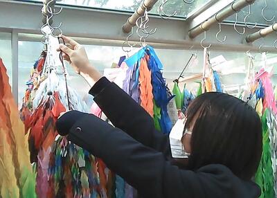 修学旅行出発前まで学年全員で協力して千羽鶴を作成しました。平和の祈りを捧げ、実行委員長が代表して奉納いたしました。