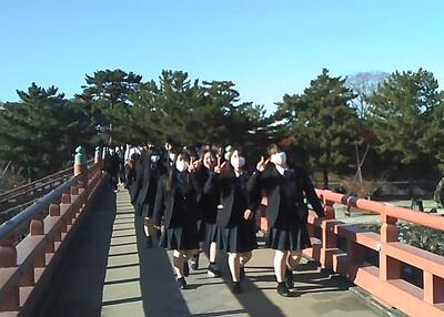 生徒のみなさんは思い出の残る修学旅行にできたでしょうか。この修学旅行を通して、決まりを守ることや集団行動のマナーなどについて、今までより意識して生活できるようになれればとも思います。