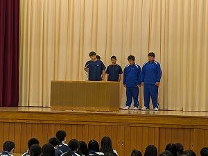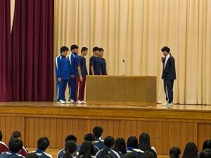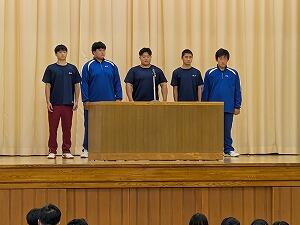 10月22日(水)、埼玉県で開催される関東新人相撲大会の壮行会が行われました。3年生が引退して新チームで勝ち取った大会です。日頃の練習の成果を十分に発揮できるよう頑張ってきます。大会は10月26日(日)に行われますので、応援お願いします。