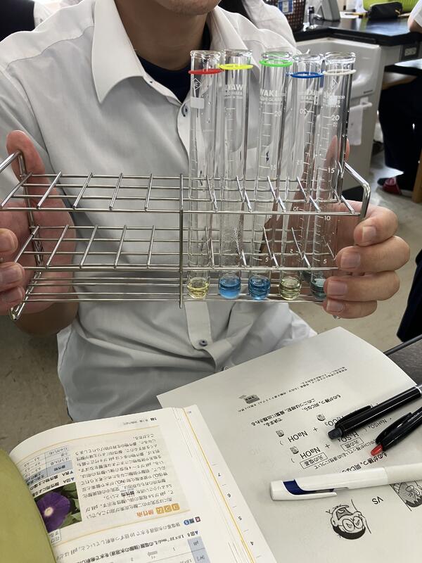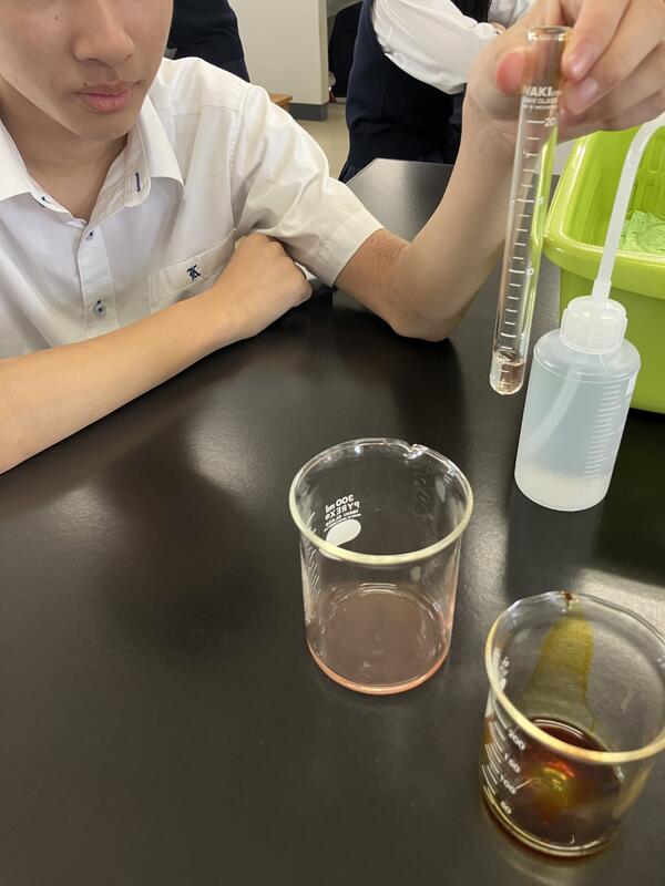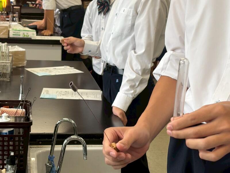 生徒たちは、自分たちの仮説と実験結果を比べながら、化学の奥深さを実感していました。こうした体験を通して、「考える→試す→わかる」という学びの楽しさが広がっています。