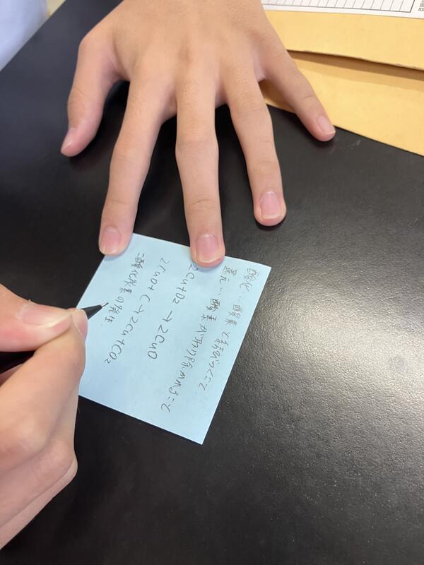 生徒たちは、目で見て、変化を感じながら、定義を自分の言葉で整理していくことで、酸化還元の本質に少しずつ近づいていきました。