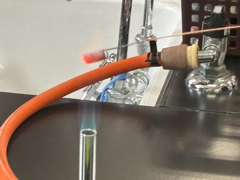 酸化の実験では、赤い銅線が黒く変化し、「おぉ、色が変わった!」と生徒たちは興味津々。還元の実験では、黒くなった銅が再び赤く戻り、「戻った!」「これが還元か!」と驚きの声が上がりました。