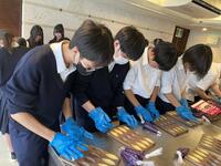 後半は、沖縄土産の定番である紅芋タルト作りに挑戦。自分の手で作ったタルトは格別の味わいで、お土産として持ち帰る生徒もいれば、その場で美味しそうに頬張る生徒もいました。