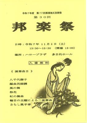11月2日(日)にハロープラザにて開催される「那須地区芸術祭 邦楽祭」に参加させていただきます。毎年、那須塩原市・大田原市などでご活躍されている方々と一緒に参加させていただいており、部員も楽しみにしている催し物です。