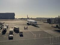 羽田空港到着です。間近で見る飛行機に、これから始まる空の旅への期待感が溢れています。天気も最高です。それでは行ってきます!