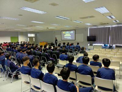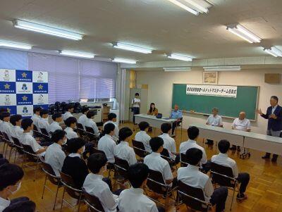 令和7年7月8日(火)、那須塩原警察署、那須塩原交通安全協会、那須塩原地区安全運転管理者協議会、那須塩原地区安全運転管理者選任事業所連絡協議から8名の皆様が来校し「那須塩原警察署ヘルメットマスターチーム任命式」が行われました。